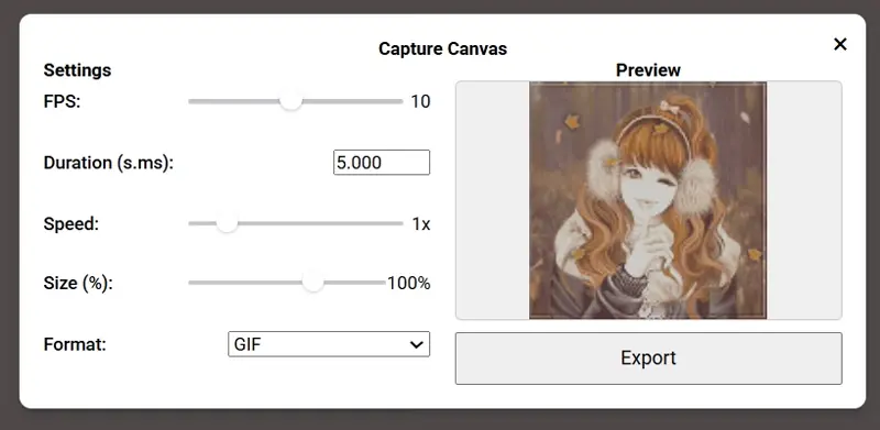 The Capture feature allows you to export your animated Picmix creation as a high-quality GIF, WEBM video, or a sequence of PNG images.