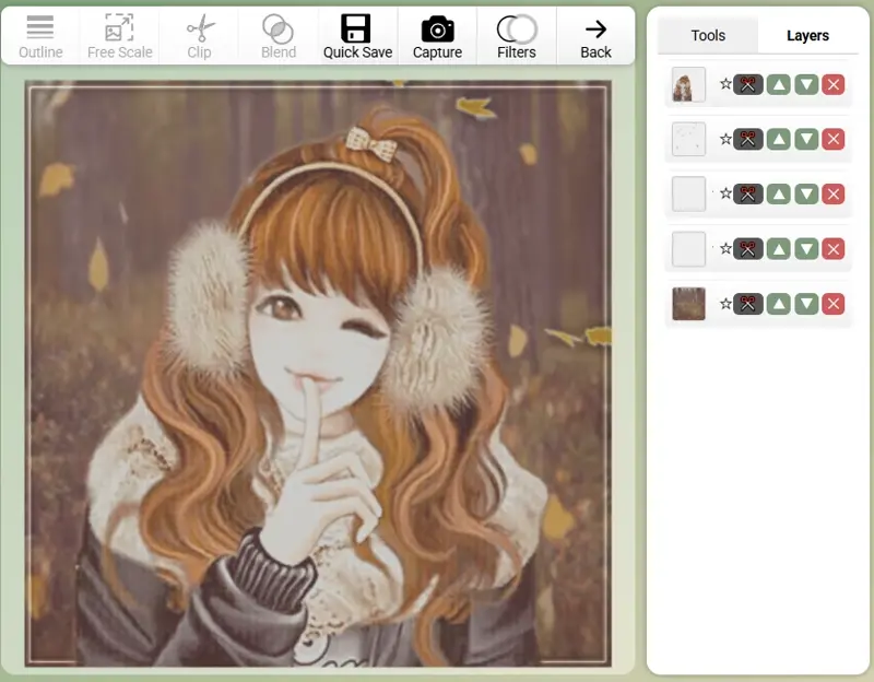 The Outline feature allows you to add a solid-colored border around any stamp or image object on the canvas.